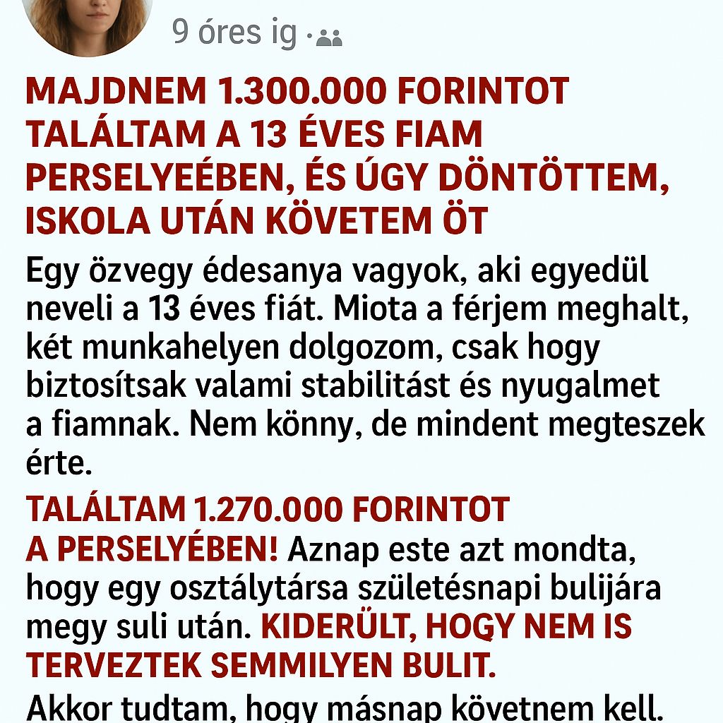 – Érted, anya. Hogy ne dolgozz annyit. Tudom, milyen nehéz neked. Azt akartam… hogy egyszer kevesebbet kelljen vállalnod. Össze akartam spórolni 1,5 milliót. Meg akartalak lepni.